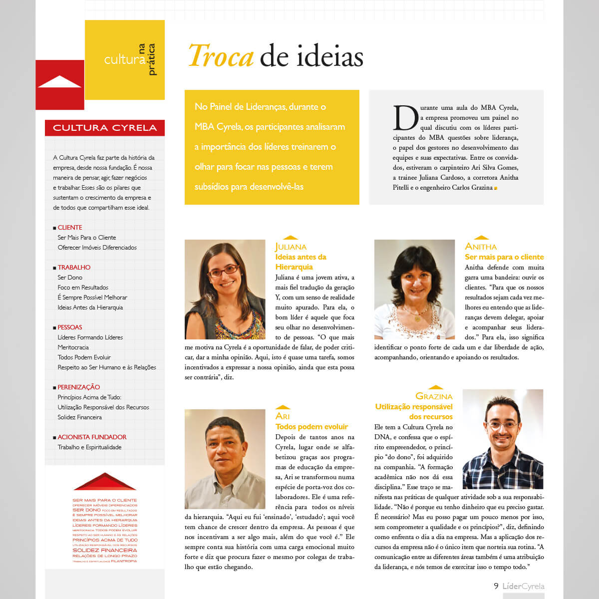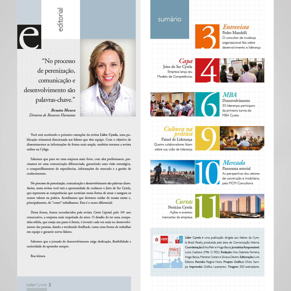 Voltada aos líderes da Cyrela, este projeto é uma revista clássica com diversidade de elementos em matérias e seções.